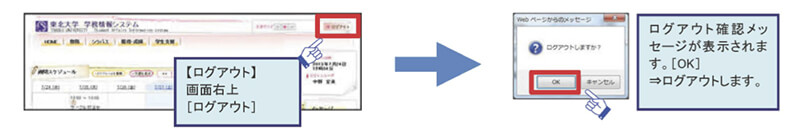 ログアウトするときには、下図のように画面右上にある「ログアウト」ボタンをクリックします。