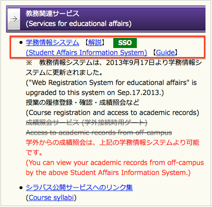 学務情報システムのシラバス検索機能については、シラバス検索のページを参照してください。