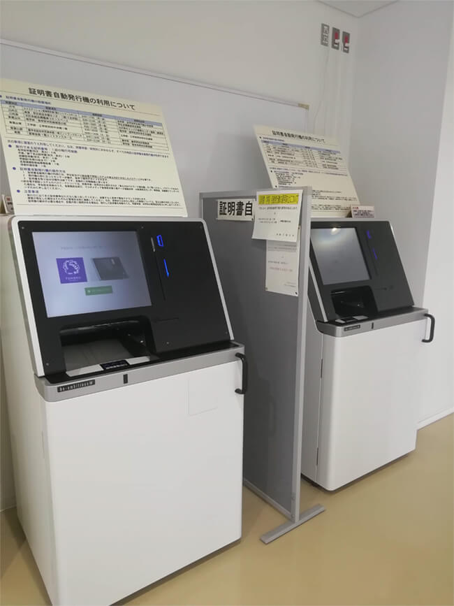 ●学内の各キャンパスに設置されている「証明書自動発行機」において利用します。